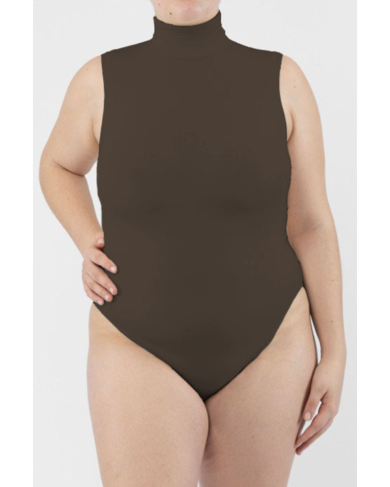Body senza maniche con collo dolcevita e selezione ai fianchi. Chiusura tassello in cotone con ganci a tre misure.